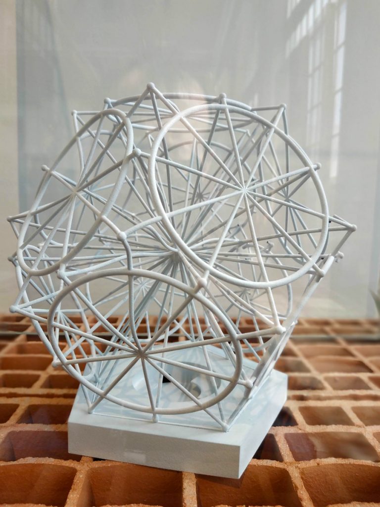 120 Rayons est un projet qui s’inspire du motif des rayons de lumière. La silhouette complexe et délicate de l’objet vient de la multiplication d’un module aux formes géométriques.