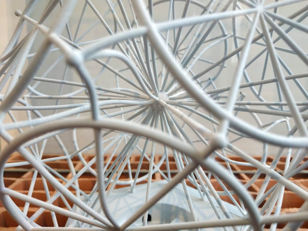 “120 Rayons” is a project inspired by the pattern produced by rays of light. The complex, delicate shape of the object is the product of the multiplication of a geometrically shaped unit. The aim is to create an atmosphere by playing with the sensitivity of the relationship between dark and light, by superimposing a pattern.