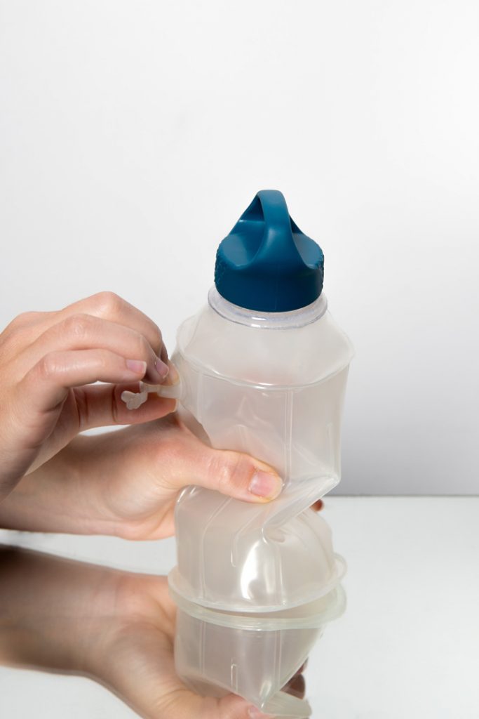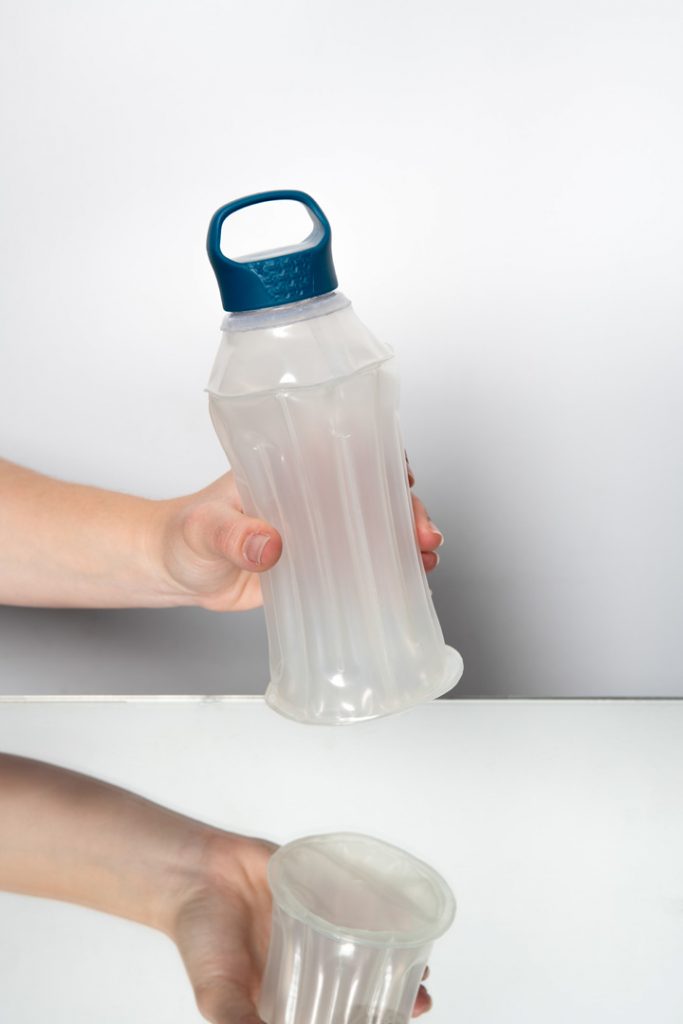 Blowite is an innovative water bottle inspired by trail flasks. Inflatable, it folds easily into a pocket, taking up a minimum of space. The air inside insulates and protects your hands from hot drinks. Versatile, it accompanies you in all your activities, whether at work, on a trip or during your sporting outings.