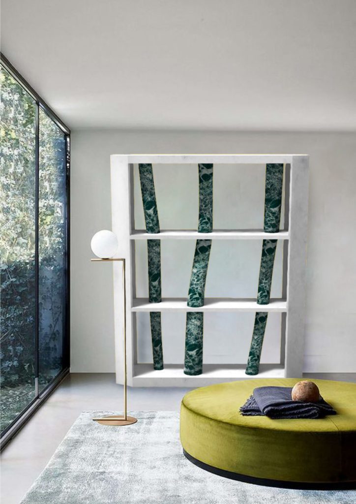 Inspirée des cavernes de marbre au Chili, Columna entend redonner à la pierre la force visuelle et matérielle qui est la sienne au sein des paysages rocheux naturels. L’étagère, sobre de l’extérieur, contraste avec les trois colonnes colorées tout en courbes, semblant évoluer plus librement à l’intérieur.
