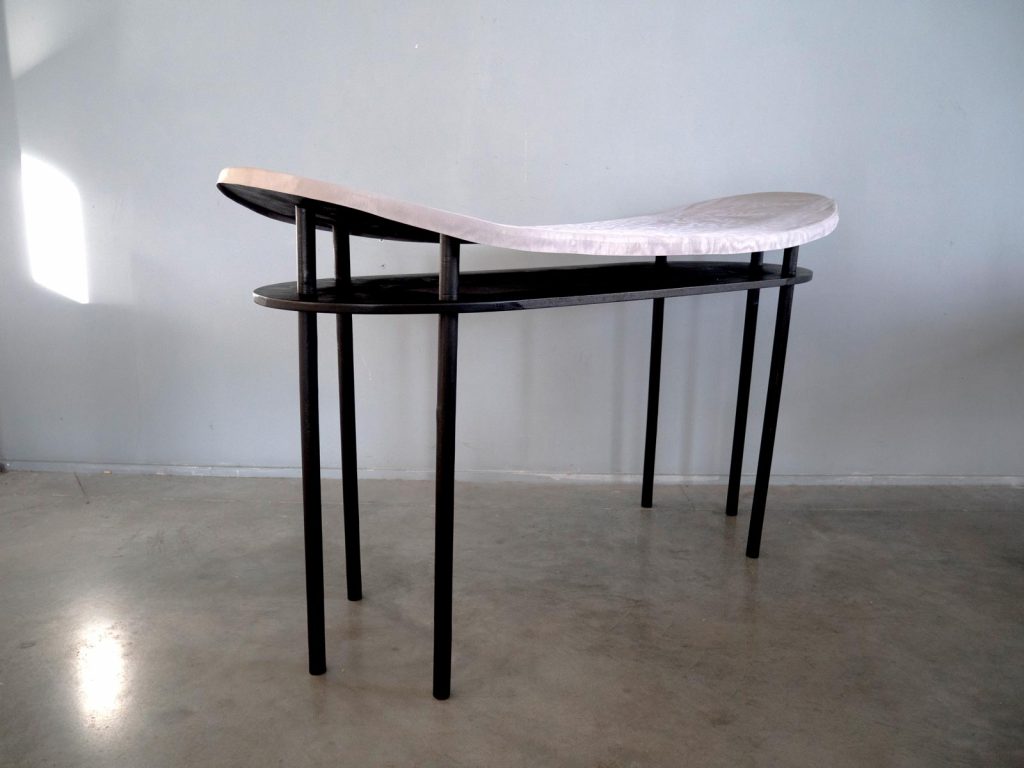 Dans un contexte de crise sanitaire, le bureau s’extirpe de son enveloppe angoissante pour devenir lieu d’évasion des sens. Usage du dessin et utilisation de textile induisent un changement de comportement de l’usager, incité, par la grâce de la moire, à la rêverie.