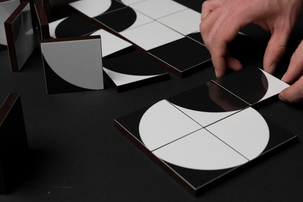 Le plateau de jeu Dap-Lay est un jeu de composition graphique. Composé de trente carreaux recto-verso, de quatre formes différentes, Dap-Lay offre une multitude de possibilités compositionnelles, à déposer au centre de la table pour la décorer.