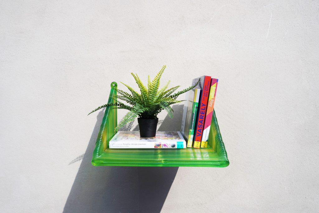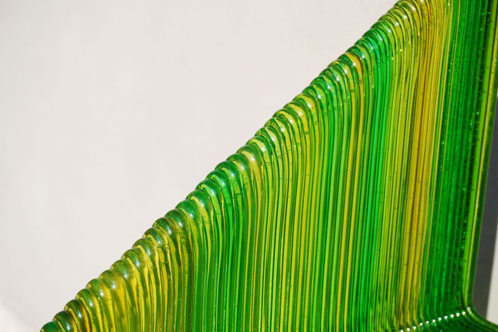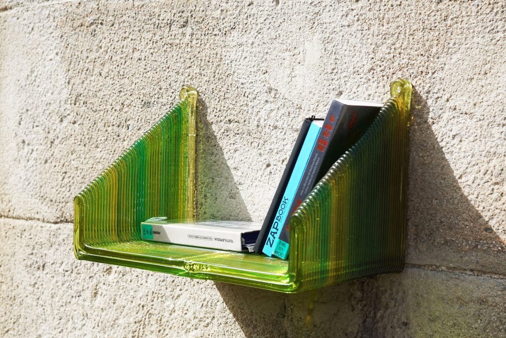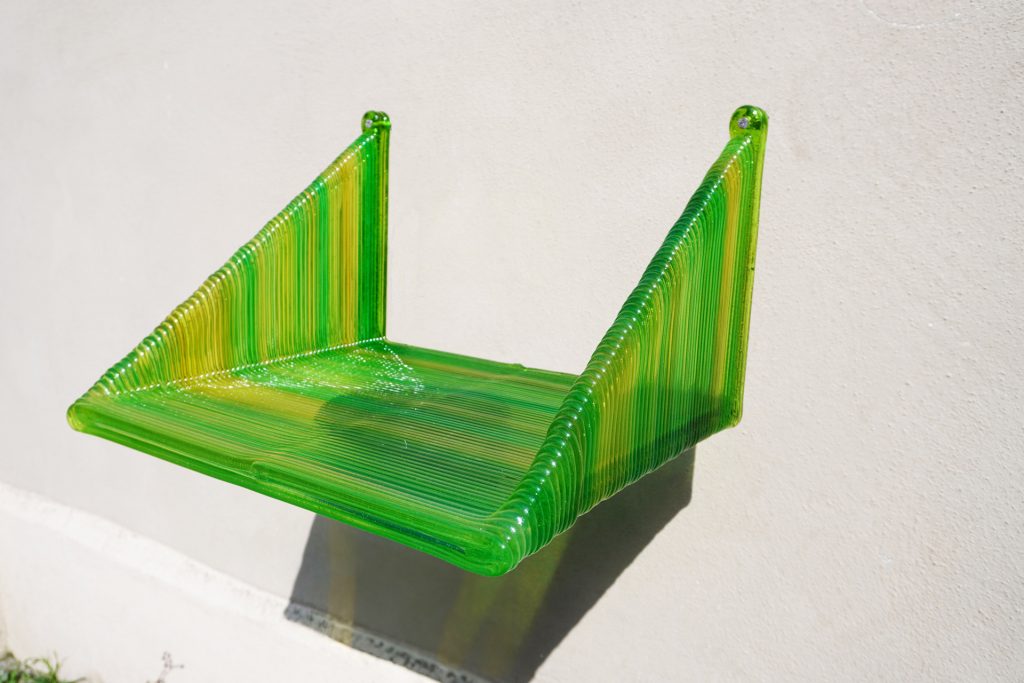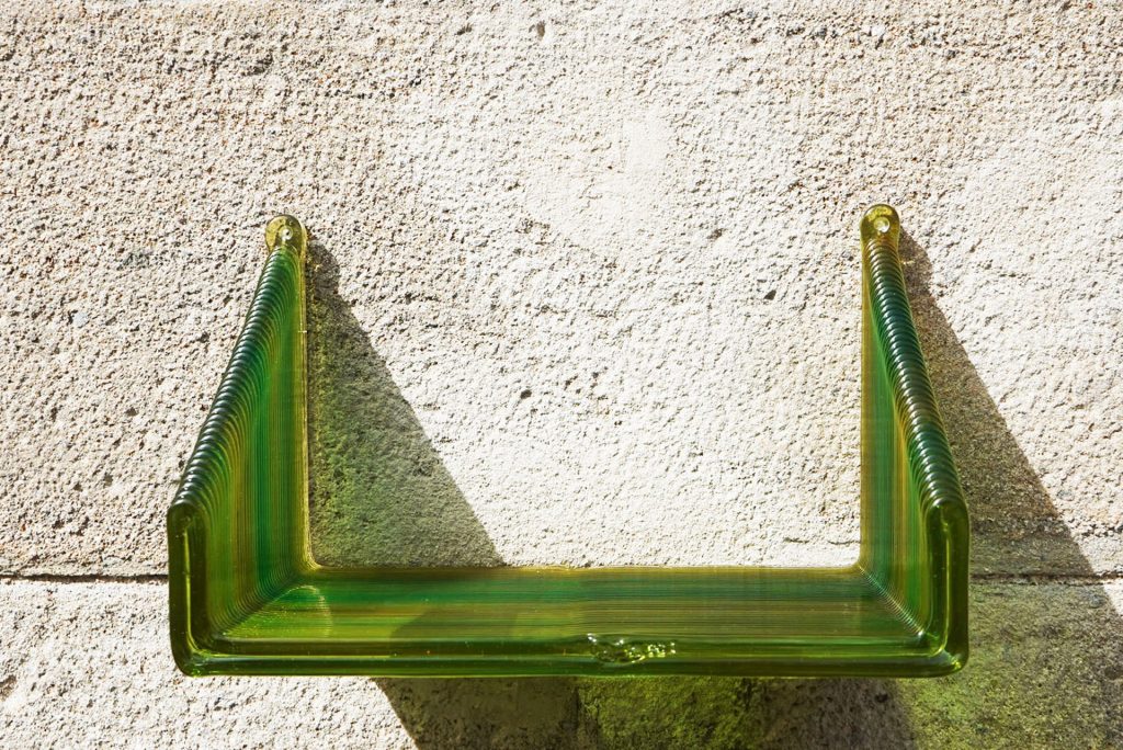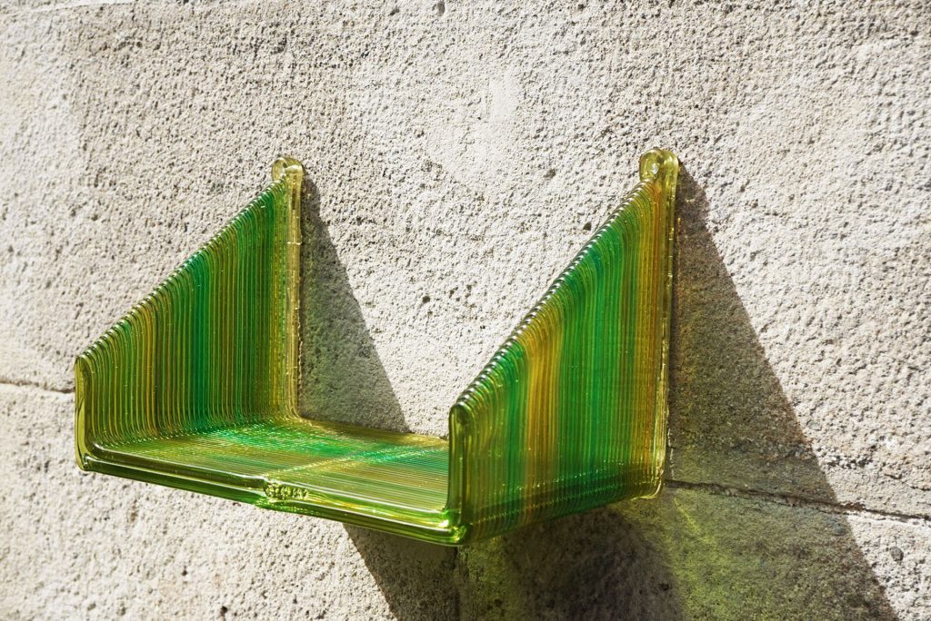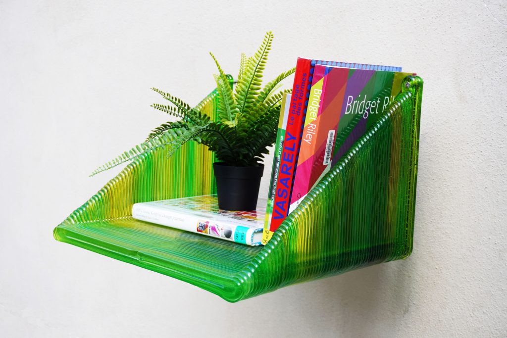 Étage is a practical and versatile shelf. Made by stacking 3D-printed wire, it features material effects and a range of colours that inspire a unique rhythm. Its simple shape is ecological and economical, using recycled plastics. It transforms space and offers an aesthetic experience.