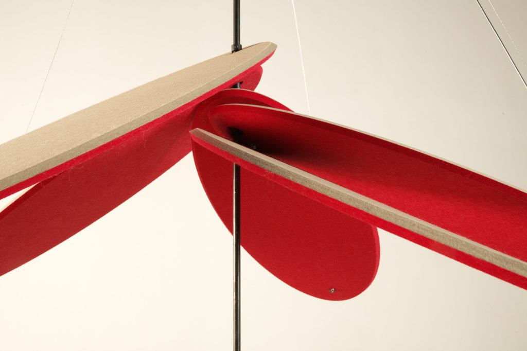 The Lustre Pétale, which comprises 5 acoustic panels, adds a floral atmosphere to the space it is installed. The 5 panels, in reference to the odd number of petals, open more or less to offer a show, different each time.