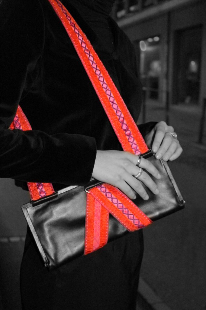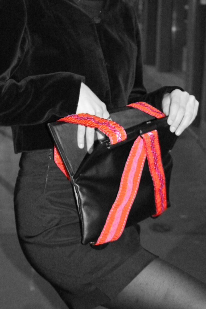 Issue de la découverte du savoir-faire du ruban, la pochette Pliage a été réalisée en collaboration avec Julien Faure (rubanerie de luxe). La pochette est structurée et mise en mouvement à l’aide d’un pliage simple et astucieux. Une gamme de vingt rubans a été spécialement sélectionnée pour créer un objet modulable selon les besoins et personnalisable au gré des envies.