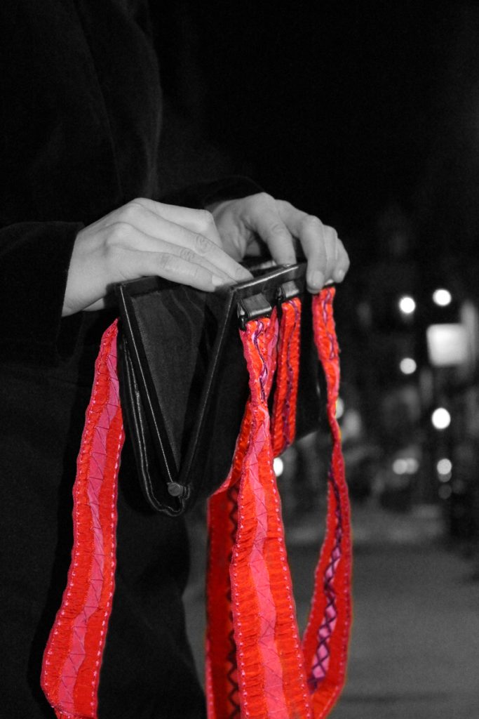 Sprung from a new discovery of the ribbon making process, the “Pliage” pouch was created in collaboration with Julian Faure (luxury ribbon maker).The pouch is structured and brought into movement using a simple and ingenious folding technique. A range of 20 ribbons has been carefully selected so as to create an object adaptable to the owner’s needs and personalised according to their desires.