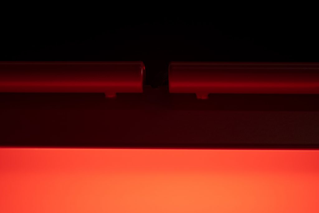 The light emitted by the upper shade turns the central section into a place of rich, varied, and enigmatic reflections which change constantly depending on the movement of the lamp and the position of the viewer.