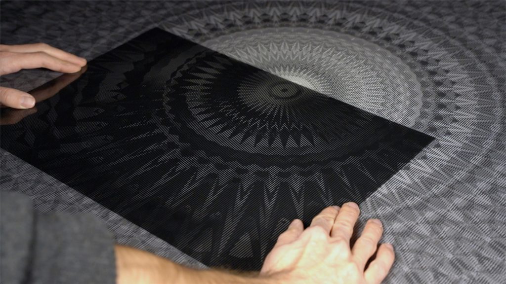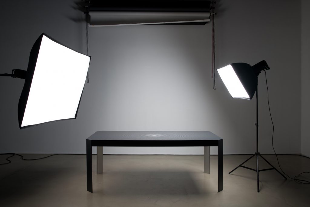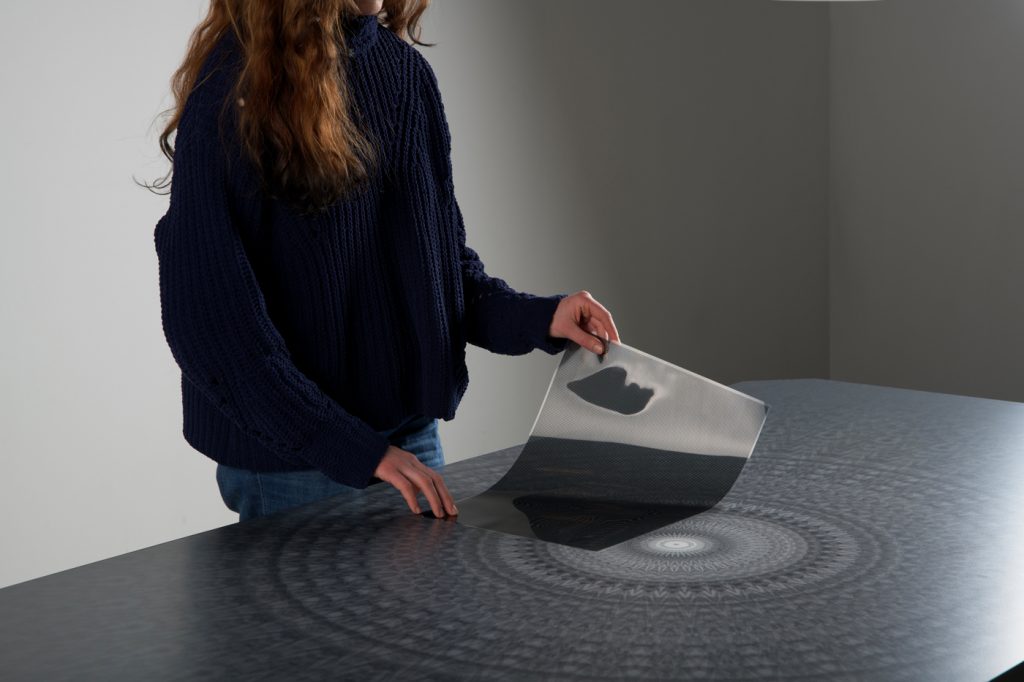 Ombro cinema is an animation technique dating from the end of the 19th century. It helps to create the illusion of movement by using two slightly different images of one picture on a moving frame. Ombro is a series of tables with tops inspired by this ancient process. The place mats invite guests to expose, animate, and experiment with the moving patterns on the table tops.